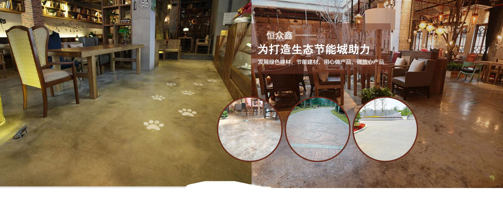 公司主要工程項(xiàng)目有彩色生態(tài)混凝土透水地坪,彩色復(fù)古地坪,藝術(shù)壓花地坪,混凝土密封固化劑地坪,環(huán)氧砂漿地坪,環(huán)氧防靜電地坪,環(huán)氧防滑紋理地坪,環(huán)氧玻璃鋼地坪,金剛砂耐磨地坪,水泥基彩色地坪,舊地面的修補(bǔ),空鼓的治理等。